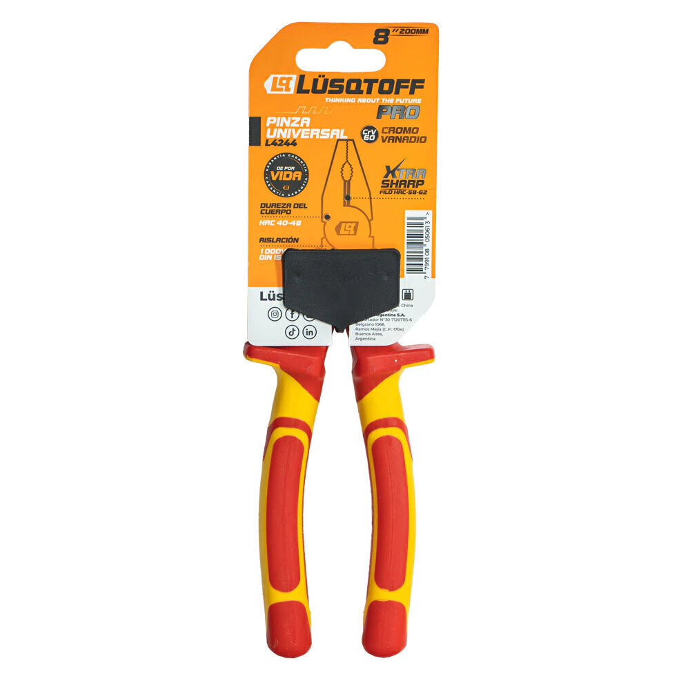 La Pinza Universal Aislada 8″ 1000V Pro Lusqtoff L4244 está pensada para profesionales que buscan seguridad, potencia y precisión en trabajos eléctricos. Fabricada en acero cromo vanadio 60, ofrece una gran resistencia al desgaste y una excelente capacidad de corte. Su aislación bajo norma VDE – DIN ISO 5746 garantiza protección hasta 1.000 voltios, brindando confianza y seguridad en cada uso.